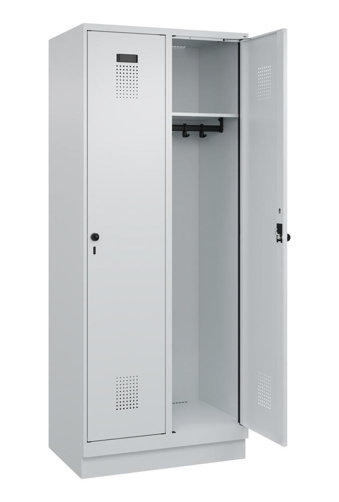 Garderobenschrank, Sockel, 1 Abteil, Abt.B 300 mm, Drehriegel, BxTxH 300x500x1950 mm, RAL 7035/5010 E6476571