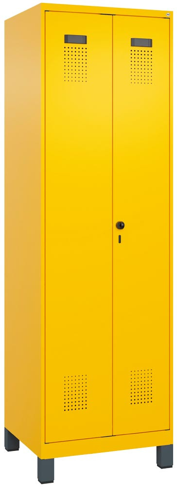 Garderobenschrank, paarw. zuein. schlagende Türen, BxTxH 600x500x1950 mm, 2 Abteile, 1 Nutzer, Abt.B 300 mm, Füße, Drehriegel, Farbbwahl
