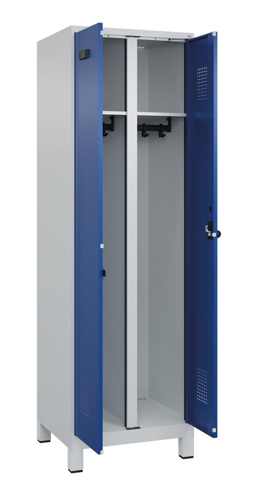 Garderobenschrank, paarw. zuein. schlagende Türen, BxTxH 600x500x1950 mm, 2 Abteile, 1 Nutzer, Abt.B 300 mm, Füße, Drehriegel, Farbbwahl E6479082