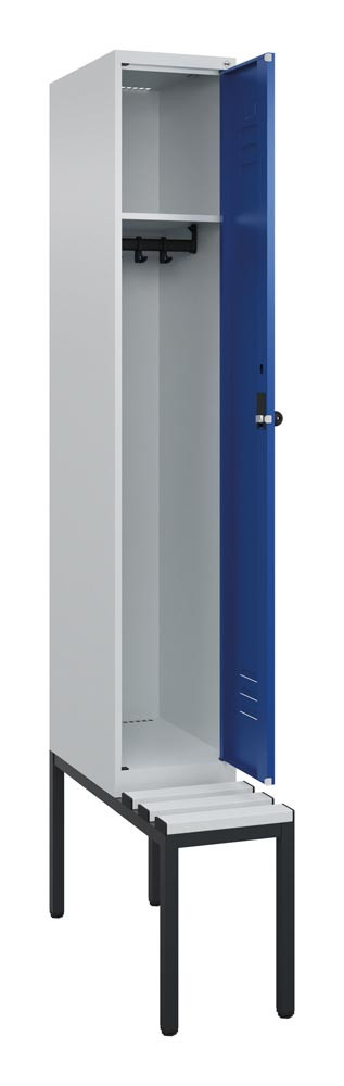 Garderobenschrank, untergeb. Sitzbank, BxTxH 300x500x2120 mm, 1 Abteil, Abt.B 300 mm, Kunststoffleisten, Drehriegel, Farbwahl E6476192