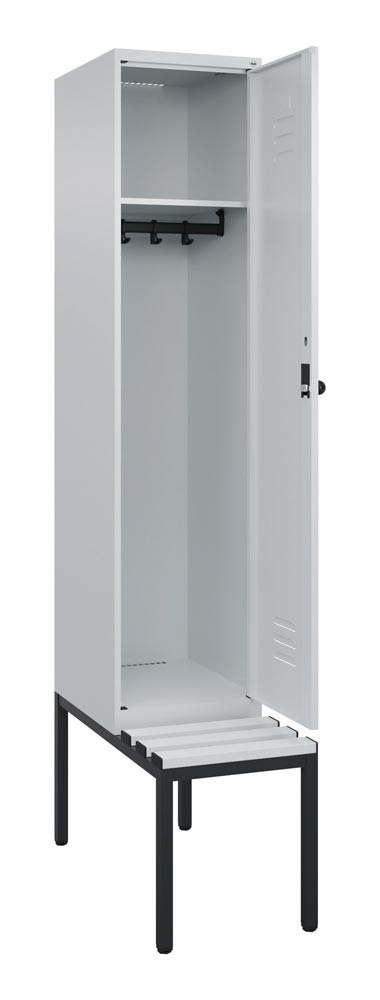 Garderobenschrank, untergeb. Sitzbank, BxTxH 300x500x2120 mm, 1 Abteil, Abt.B 300 mm, Kunststoffleisten, Drehriegel, Farbwahl E6476192