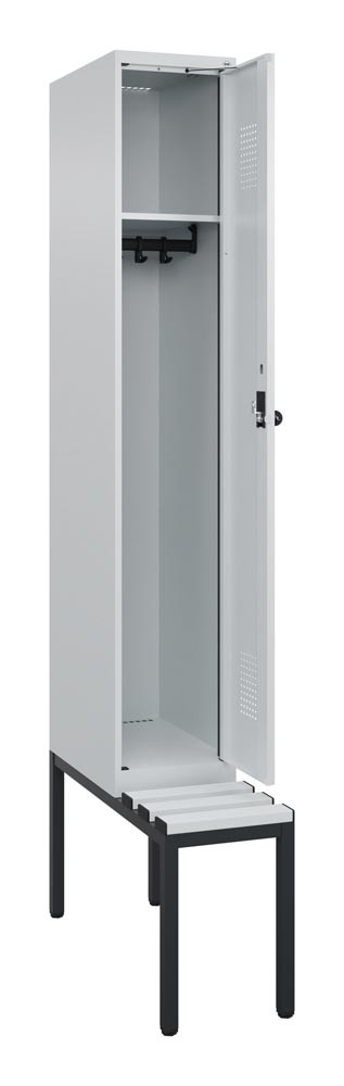 Garderobenschrank, untergeb. Sitzbank, Kunststoff-Sitzleisten, 1 Abteil, Abt.B 300 mm, Drehriegel, BxTxH 300x500x2120 mm, Farbwahl E6476614