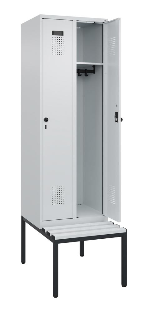 Garderobenschrank, untergeb. Sitzbank, Kunststoff-Sitzleisten, 1 Abteil, Abt.B 400 mm, Drehriegel, BxTxH 400x500x2120 mm, RAL 7035 E6476615