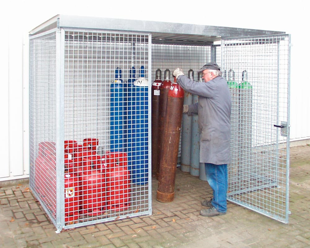 ∙ Zur vorschriftsmäßigen Lagerung von Gasflaschen im Außenbereich ∙ Ausführung nach TRGS 510 ∙ Stabile Rahmenkonstruktion mit Gitterfüllung, komplett feuerverzinkt nach EN ISO 1461 ∙ Abschließbar ∙ Vorbereitet zur Bodenbefestigung ∙ Baukastensystem mit Aufbauanleitung zur einfachen Selbstmontage