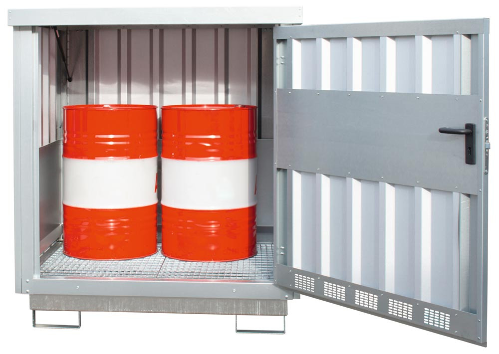 Gefahrstoff-Depot für 2x200l Fass, BxTxH 1535x1290x1730 mm, Auffangvol. 205 l, verzinkt E6408591