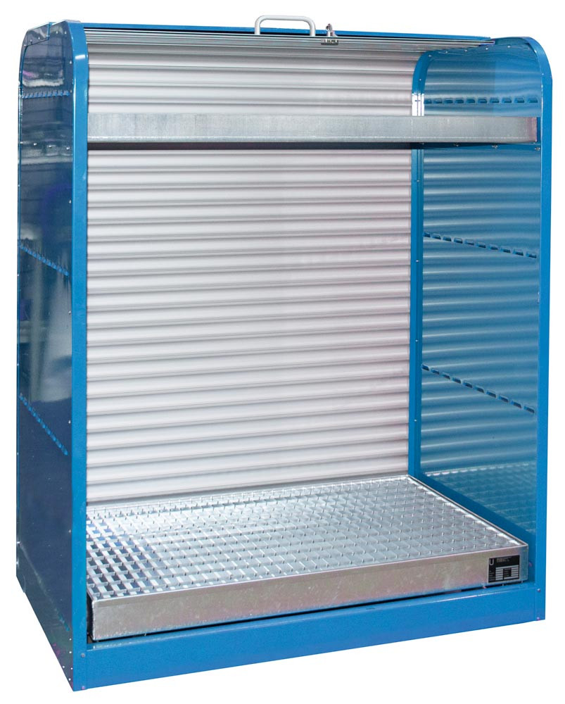 Gefahrstoff-Depot für 6x60-l-Fässer, BxTxH 1300x870x1610 mm, 1 Wanne, 1 Gitterrost, Vol. 73 l, Rolllade, RAL 2000 E1987231