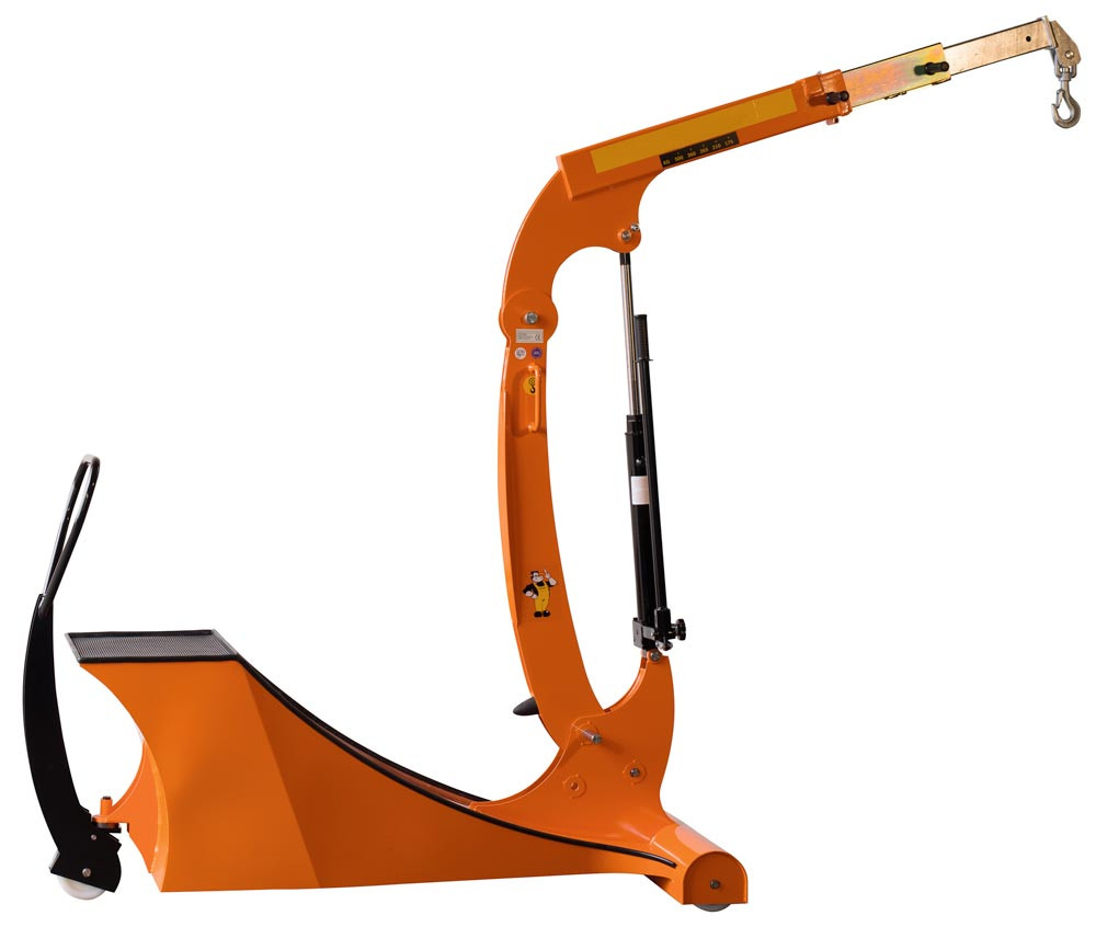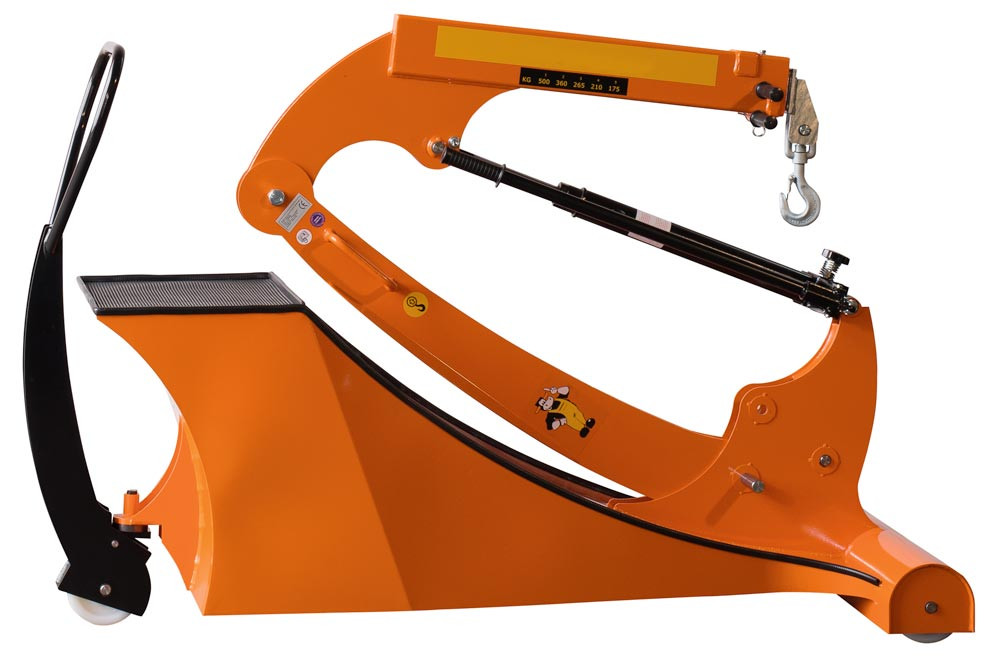 ∙ Robuste Stahlschweißkonstruktion ∙ Schnell und einfach kann durch Entfernen der Steckbolzen die Säule und die Hydraulik platzsparend auf das Fahrgestell geklappt werden ∙ 5fach verstellbarer Kranarm ∙ Komplett betriebsbereit mit Wirbelhaken, Hydrauliköl und Gegengewicht ∙ Doppelt wirkende Hydraulikpumpe mit extra langem Pumphebel ∙ Auch mit Batterie-elektrischem Hubwerk lieferbar ∙ Senken feinfühlig und millimetergenau möglich ∙ Last in jeder Höhe feststellbar ∙ Leichtgängig durch kugelgelagerte Polyamid-Räder mit Fußschutz ∙ Auch unter Last verfahrbar ∙ Automatische Feststellbremse durch Hochstellen der ergonomischen Deichsel, die zum Transport abnehmbar ist ∙ Im Gegengewicht integrierte Werkzeugablage ∙ RAL 2004 reinorange ∙ Bei der Batterie-elektrischen Ausführung erfolgt die Lieferung inklusive Batterie und Ladegerät