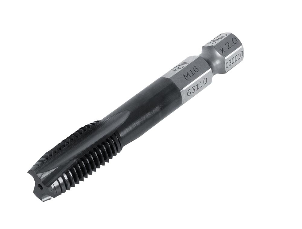 FEIN Vario Gewindebohrer in 11 verschiedenen Größen für Durchgangslöcher. Einzeln oder im Set (M8 - M16) erhältlich. Aus robustem HSS Material mit TiAlN Beschichtung (Titan-AluminiumNitrit). Speziell für die Arbeit mit handgeführten Schlagschraubern. Hitzebeständig bis 800 °C und reibungsärmer dank exklusiver TiAlN Beschichtung.