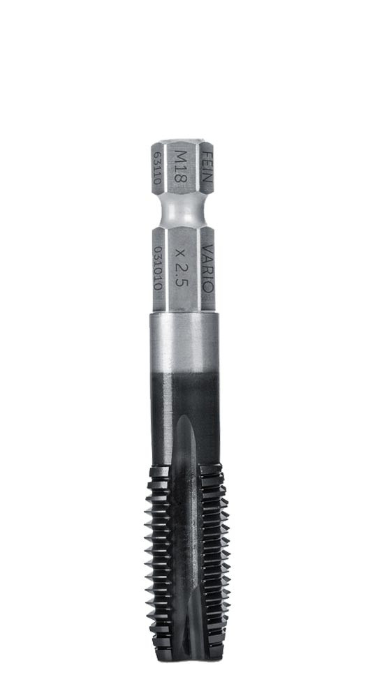 FEIN Vario Gewindebohrer in 11 verschiedenen Größen für Durchgangslöcher. Einzeln oder im Set (M8 - M16) erhältlich. Aus robustem HSS Material mit TiAlN Beschichtung (Titan-AluminiumNitrit). Speziell für die Arbeit mit handgeführten Schlagschraubern. Hitzebeständig bis 800 °C und reibungsärmer dank exklusiver TiAlN Beschichtung.