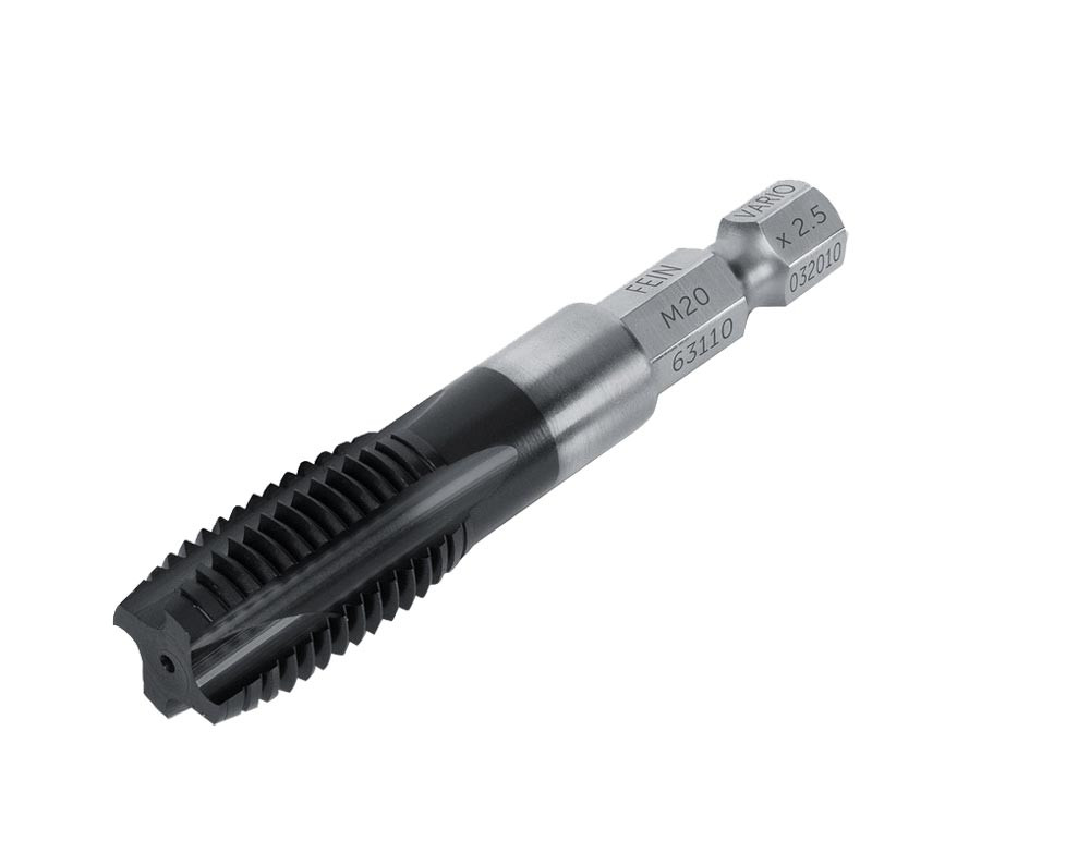 FEIN Vario Gewindebohrer in 11 verschiedenen Größen für Durchgangslöcher. Einzeln oder im Set (M8 - M16) erhältlich. Aus robustem HSS Material mit TiAlN Beschichtung (Titan-AluminiumNitrit). Speziell für die Arbeit mit handgeführten Schlagschraubern. Hitzebeständig bis 800 °C und reibungsärmer dank exklusiver TiAlN Beschichtung.