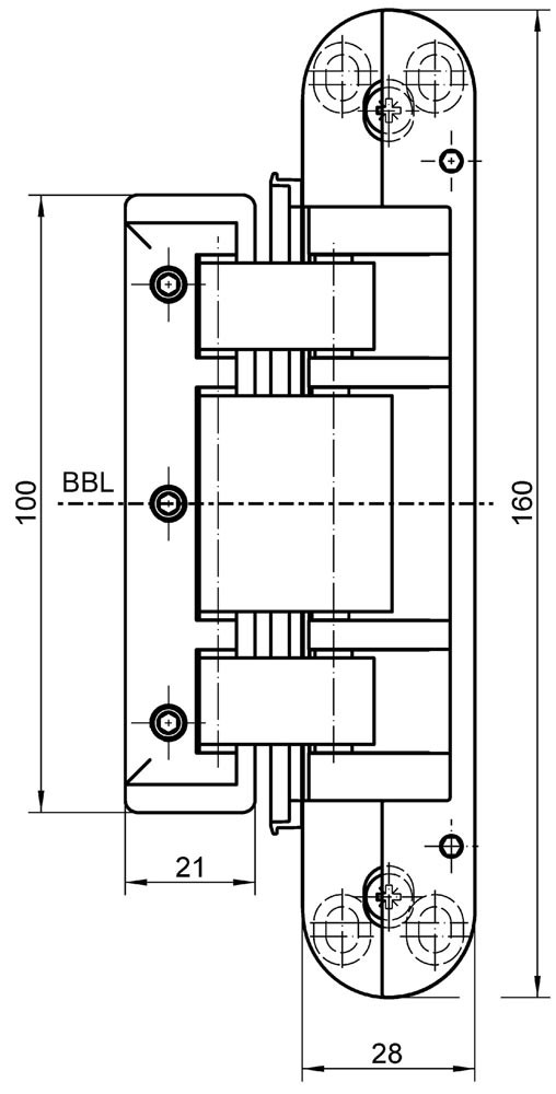 für flächenbündige Ganzglastüren an Holz-, Stahl- und Aluminiumzargen · für ESG Glasstärken 8-10 mm Belastungswert 80 kg · Rollenlänge 160 mm · verdecktliegend · Öffnungswinkel bis 180° · wartungsfreie Gleitlagertechnik · Seite verstellbar + 3,0/-2,0 mm · Höhe verstellbar +/- 1 mm · DIN links/rechts verwendbar
