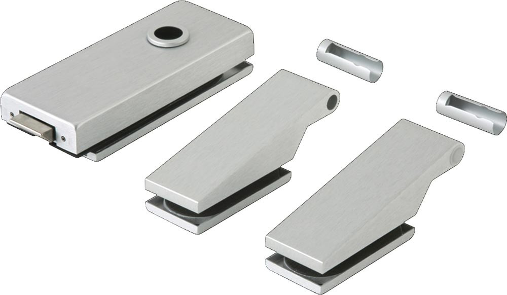 mit rechteckigem Kappenende · für 8 mm Glasdicke und 24 mm Falztiefe bzw. für 10 mm Glasdicke und 26 mm Falztiefe · DIN links / rechts verwendbar · Material Aluminium · für ESG 8 bzw. 10 mm · max. Türflügelgewicht: 60 kg / 80 kg (OFFICE Bänder) · Schlosskasten Abmessungen (BxHxT): 165x65x37 mm · Schloss nach DIN 18 251, Klasse 3 (200.000 Betätigungen der Fallenfunktion und 50.000 Betätigungen des Riegels, bei fest montiertem Beschlag nach DIN 18 257 · Einsatzbereich für 1-/2-flügelige Anlagen oder Anlagen mit Seitenteil · mit Drückerführung · ohne Drücker
