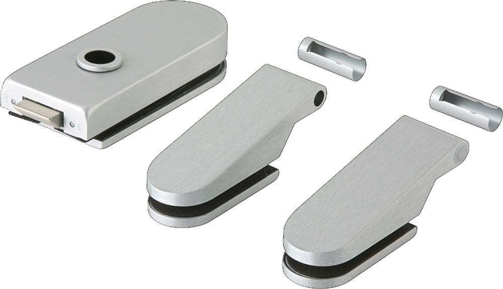 mit halbkreisförmigem Kappenende, zur Glasmitte zeigend · für 8 mm Glasdicke und 24 mm Falztiefe bzw. für 10 mm Glasdicke und 26 mm Falztiefe · DIN links / rechts verwendbar · Material Aluminium · für ESG 8 bzw. 10 mm · max. Türflügelgewicht: 60 kg / 80 kg (OFFICE Bänder) · Schlosskasten Abmessungen (BxHxT): 159x65x37 mm · Schloss nach DIN 18 251, Klasse 3 (200.000 Betätigungen der Fallenfunktion und 50.000 Betätigungen des Riegels, bei fest montiertem Beschlag nach DIN 18 257 · Einsatzbereich für 1-/2-flügelige Anlagen oder Anlagen mit Seitenteil · mit Drückerführung · ohne Drücker