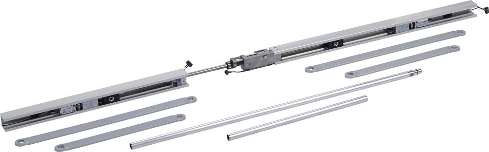 Gleitschienen - Schließfolgeregler A=1290-2100mm Schmiedehebel K8/K12 silberfarbig Sonderausführung Standflügelbreite 540 -