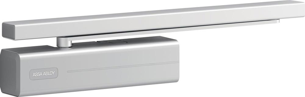 Obenliegender Türschließer mit Cam-Motion® Technologie · geprüft nach DIN EN 1154 · erfüllt die Anforderung nach DIN SPEC 1104 durch stark abfallendes Öffnungsmoment · mit Montageplatte für Feuer- und Rauchschutztüren verwendbar · max. Höhenausgleich stufenlos 14 mm · Schließkraft stufenlos einstellbar · Schließgeschwindigkeit, Endschlag und Öffnungsdämpfung stufenlos von vorne einstellbar · DIN links und DIN rechts verwendbar · Band- und Bandgegenseite in Normal- und Kopfmontage