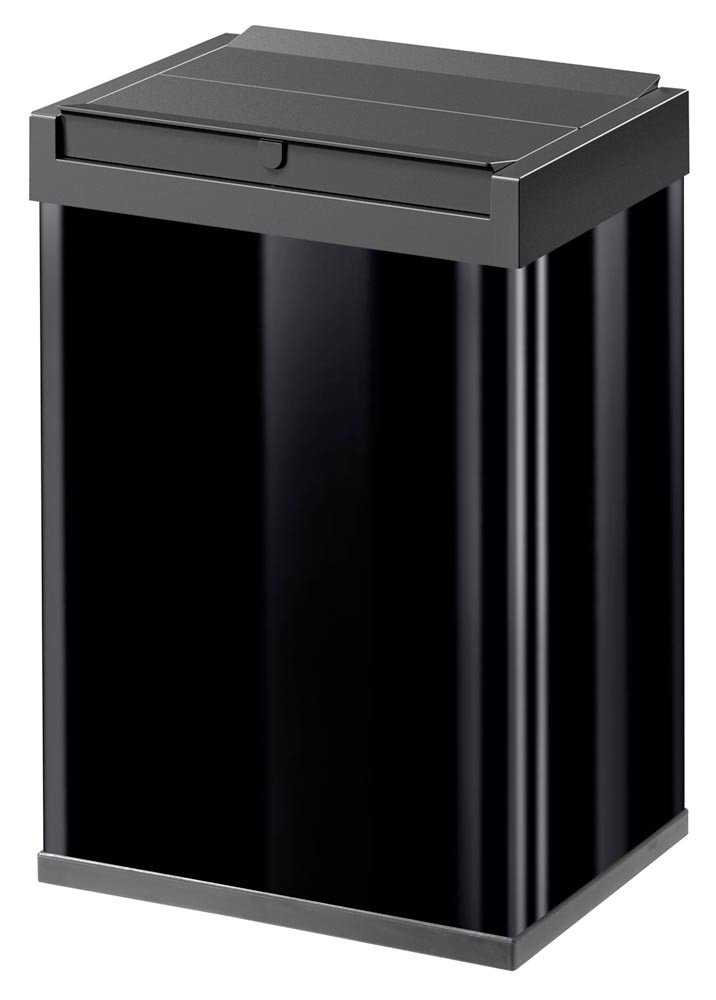 Großraum-Abfallbox, Volumen 35 l, BxTxH 340x260x500 mm, Gehäuse Stahlblech schwarz, Kunststoff-Schwingdeckel schwarz E6042812