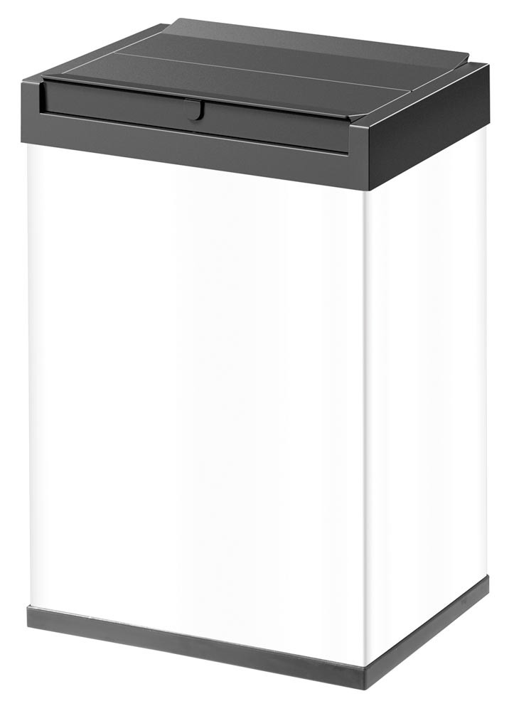 Großraum-Abfallbox, Volumen 35 l, BxTxH 340x260x500 mm, Gehäuse Stahlblech weiß, Kunststoff-Schwingdeckel schwarz E6042813