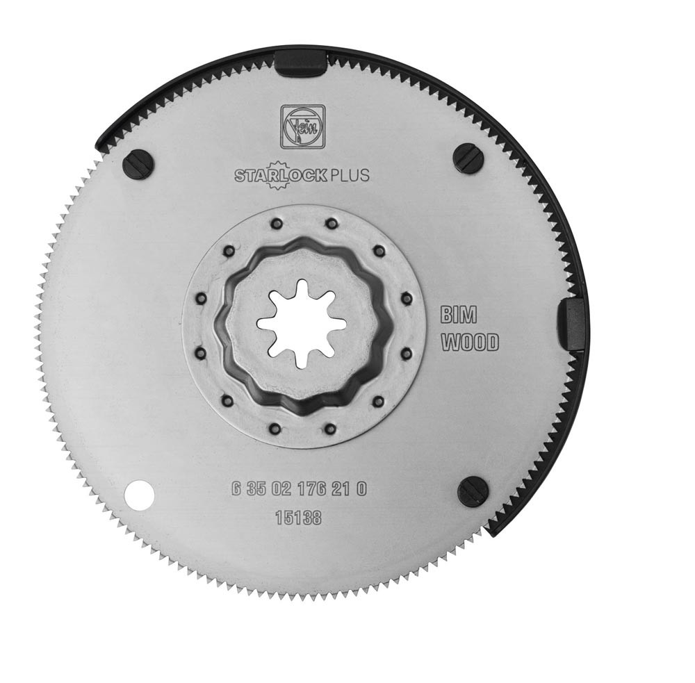 Ausführung: Rundes HSS-Sägeblatt mit "Starlock Plus" (SLP)-Aufnahme ∙ Zum Sägen von Holz ∙ Ideal für lange, gerade Schnitte und zum Ausschneiden von verlegtem Parkett, Laminat und Wandvertäfelungen ∙ E 909 369 mit Tiefenanschlag