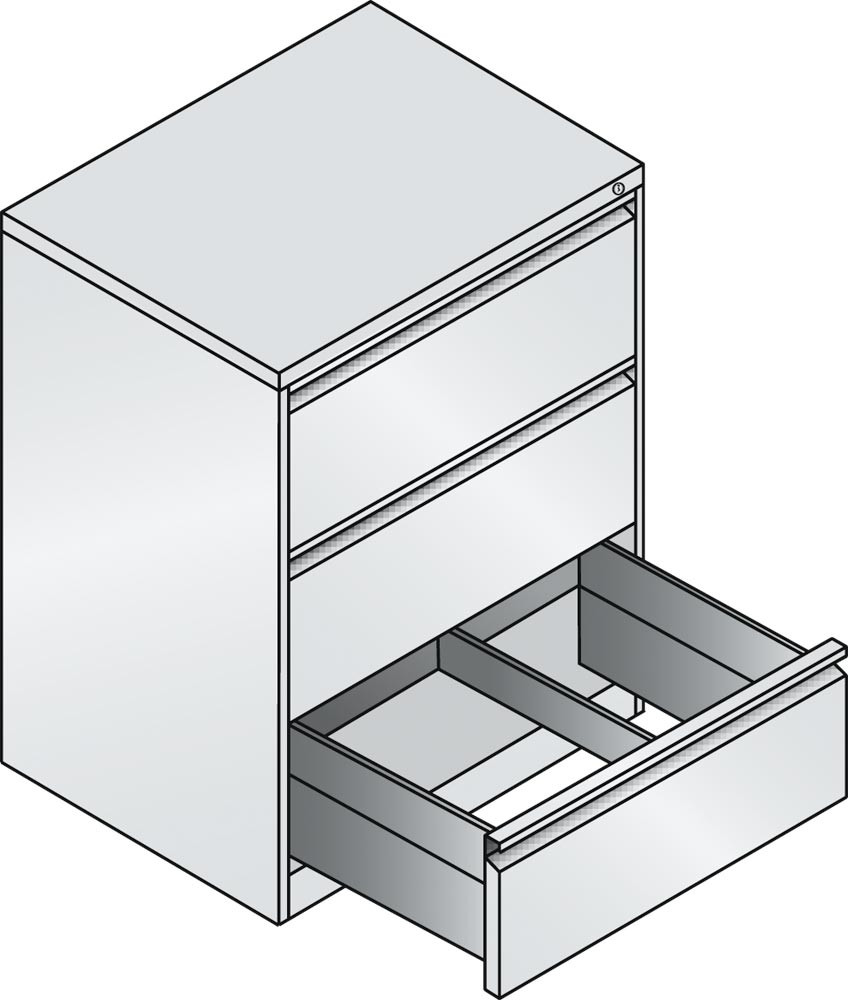· Stabiles Stahlgehäuse, mit hoher Lebensdauer · Voll ausziehbare Schubladen mit durchgehender Griffleiste und geschlossenen Böden · Die Schubladen laufen auf Kugelrollen-Teleskopschienen · Doppel-Auszugsperre · Drehzylinderschloss, inkl. 2 Schlüsseln · Schubladenbelastung bis 50 kg (bei gleichmäßig verteilter Last) ∙ 5 Jahre Garantie auf die Schienenführung ∙ WeitereFarben RAL 9006 Weißaluminium und RAL 9016 Verkehrsweiß ohne Mehrpreis möglich