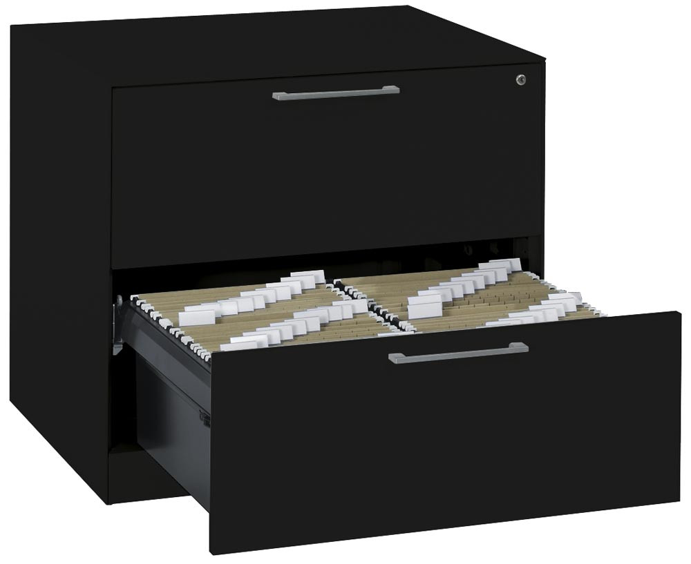 Hängeregistraturschrank, BxTxH 440x600x698 mm, einbahnig, 2 Schubladen, Bügelgriff, RAL 7021 schwarzgrau E852621