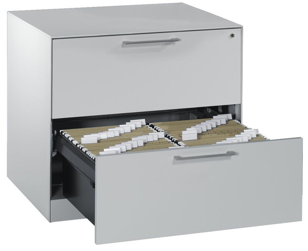Hängeregistraturschrank, BxTxH 800x600x698 mm, zweibahnig, 2 Schubladen, Bügelgriff, RAL 7035 lichtgrau