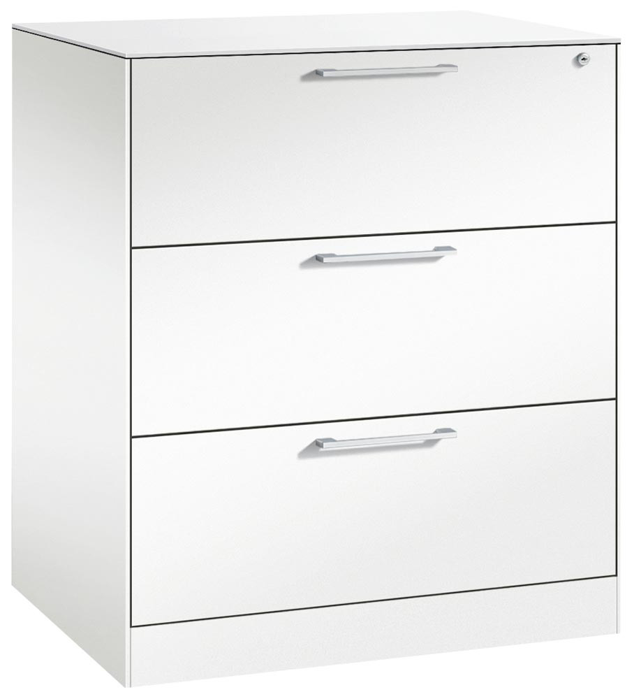 Hängeregistraturschrank, BxTxH 800x600x998 mm, zweibahnig, 3 Schubladen, Bügelgriff, RAL 9016 verkehrsweiß