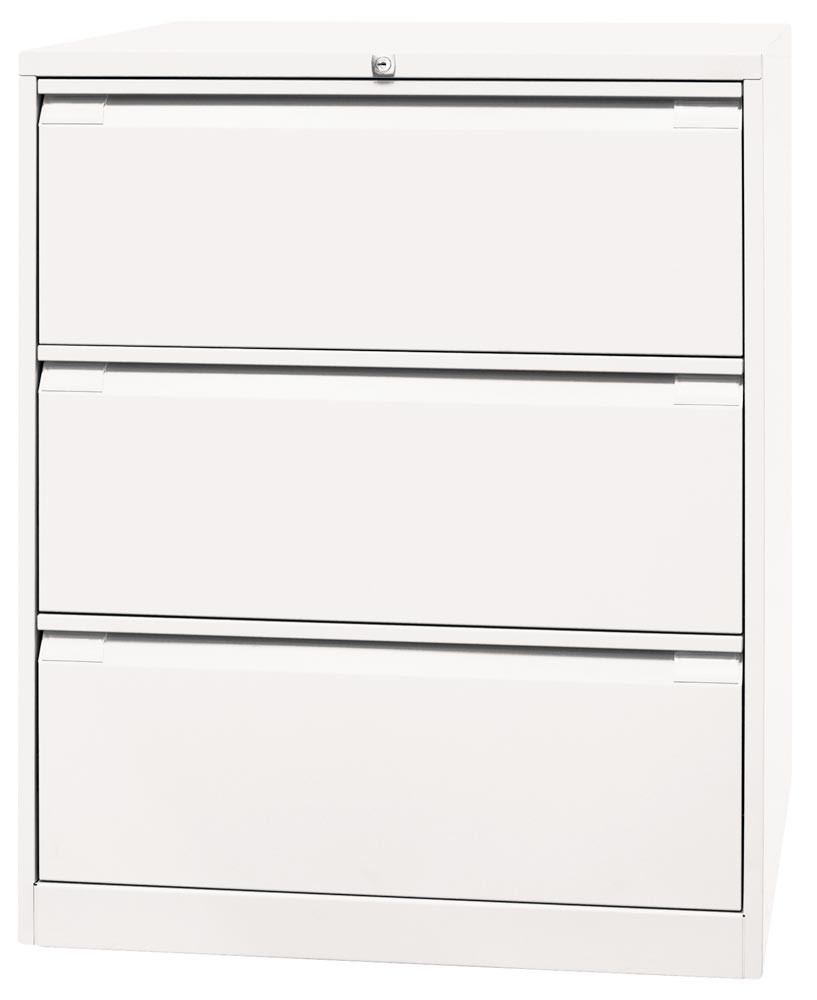 Hängeregistraturschrank, BxTxH 800x622x1016 mm, doppelbahnig, 3 Schubladen, Griffleiste, verkehrsweiß