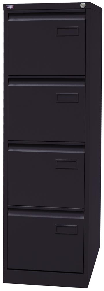 Hängeregistraturschrank LIGHT, BxTxH 413x622x1321 mm, einbahnig, 4 Schubladen, Griffleiste, schwarz