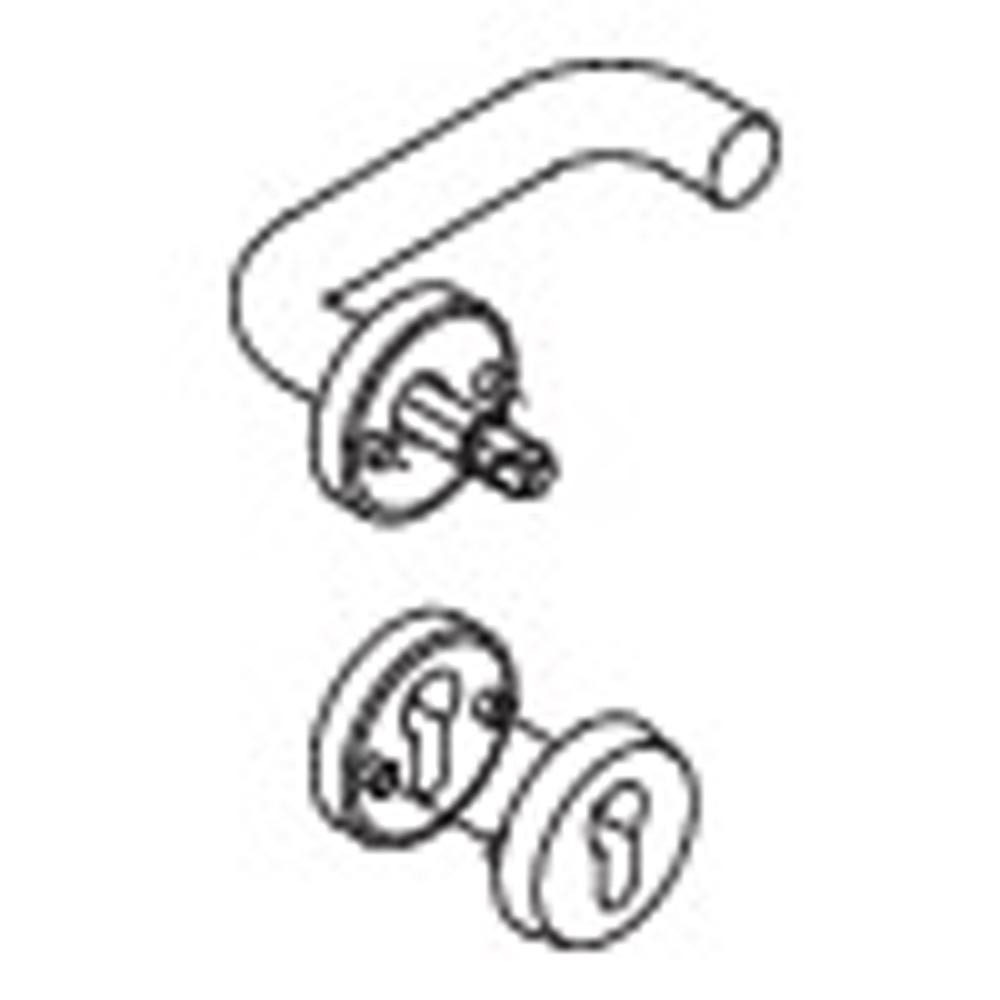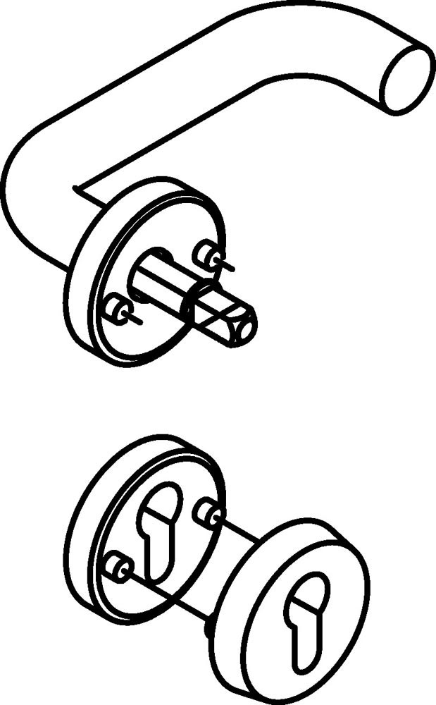 mit Schutzrosette · in H-Technik mit Rosetten nach DIN 18255 und DIN EN 1906 aus Edelstahl, Oberfläche matt geschliffen, bestehend aus: Türdrücker 111XAH, Durchmesser 21,3 mm, Rundrosetten 305.21XAH. Rosette, rund, Durchmesser 55 mm, 10,5 mm hoch. Schutzrosette 306.23XAES aus Edelstahl, Außenrosette, massiv, Durchmesser 55 mm, 12 mm hoch, gehärtet, Innenrosette, Durchmesser 55 mm, 10,5 mm hoch.
