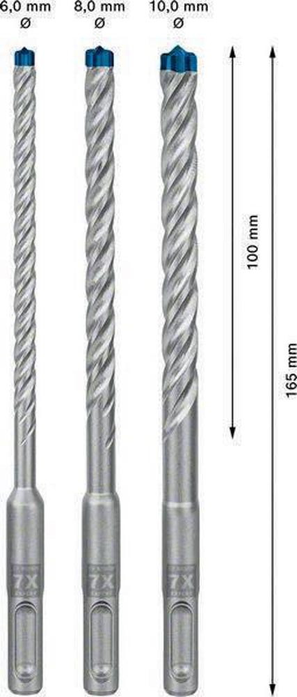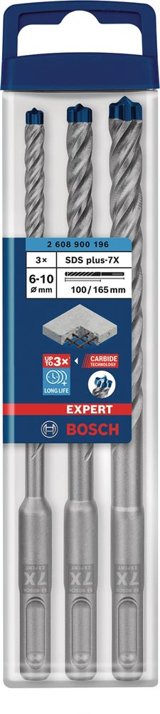 Hammerbohrersatz Expert Plus-7X 3-teilig SDS Plus Kunststoffbox mit Euroloch
