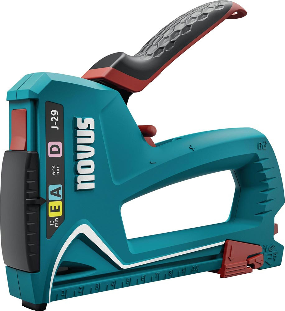 Zink-Druckguss-Gehäuse · Easy-Shift: Wechsel zwischen Feindrahtklammern, Nägeln und Flachdrahtklammern per Schiebemechanismus · Precise-Plus · Power-Control: Schlagkaftregulierung · Quick-Loading-System: Unterlademechanik mit Sicherheitsentriegelung · Comfort Grip: Ergonomischer Softgrip-Hebel · Griffverriegelung zum Verstauen bei Nichtgebrauch · Klammersichtfenster zur Anzeige des aktuellen Heftmittel-Füllstandes