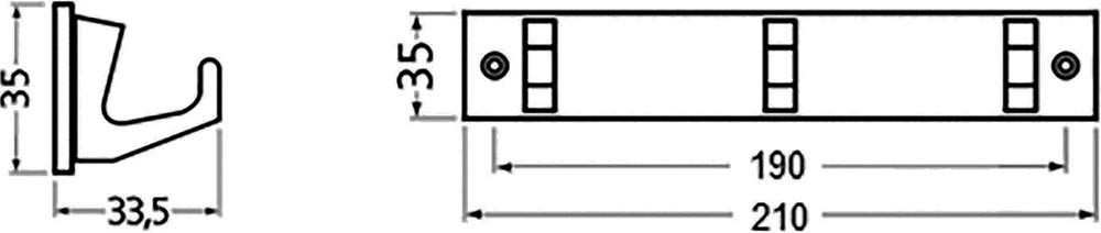 Handtuchhakenleiste 3 Haken Höhe 35 mm Länge 210 mm Aluminium silberfarbig eloxiert Ausladung 33,5 mm E6431887