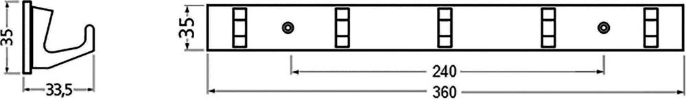 Handtuchhakenleiste 5 Haken Höhe 35 mm Länge 360 mm Aluminium silberfarbig eloxiert Ausladung 33,5 mm