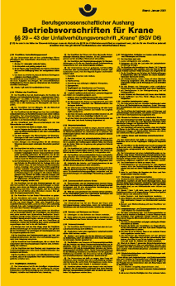| Ausführung Hinweisschild | Betriebsvorschriften für Krane |