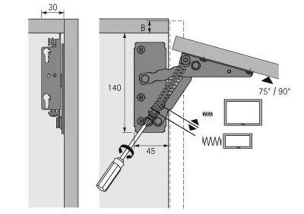 Hochklappbeschlag Lift, 180 N Stahl vernickelt 90