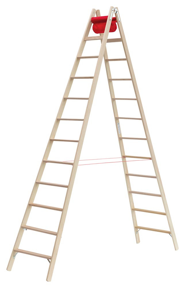 · Massive Stufen aus Hartholz ∙ Beidseitig begehbar ∙ Hochwertige Holm-Stufen-Verbindung durch Zweifinger-Verzapfung ∙ Spreizsicherung durch hochfeste Gurtbänder ∙ Starke Holme garantieren hohe Stabilität ∙ Mit integrierter Werkzeugtasche · Stufentiefe 80 mm · Zulässige Belastung 150 kg · Entspricht EN 131 · Inklusive Eimerhaken