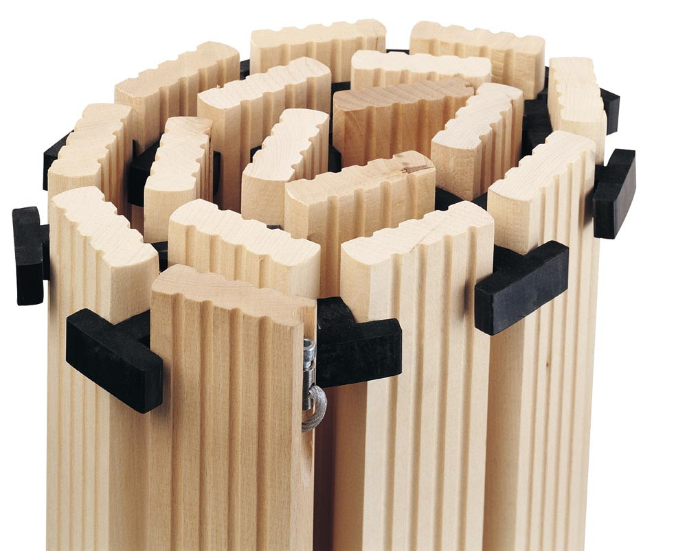 ∙ Holzlaufroste werden aus abgelagertem Buchenholz hergestellt ∙ Das getrocknete und handverlesene Hartholz wird mittels einem kunststoffummanteltem Stahlseil sowie T-Gummipuffern zu einem Holzlaufrost verbunden.