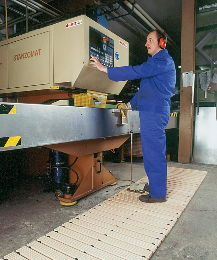 Holzlaufrost aus abgelagertem Buchenholz, inkl. kunststoffummanteltem Stahlseil und T-Gummipuffern, BxH 1000x36 mm, Gummilagerung: 3-fach E822825