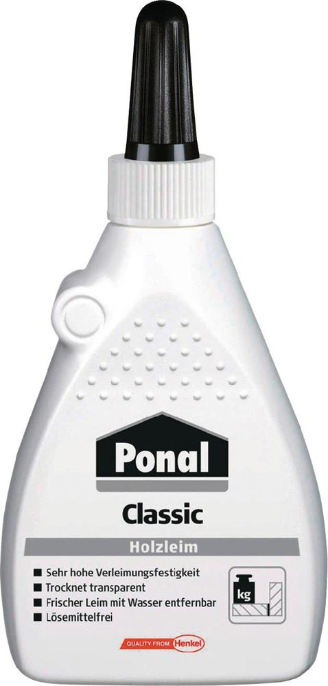 gebrauchsfertiger, wasserbasierter Holz- und Bastelleim · ideal für die Montageverleimung (Dübel, Nut und Feder, Schlitz und Zapfen), Fugenverleimung (Massivholzanleimer) und Flächenverleimung (Schichtpressstoffplatten, Hartfaserplatten, Furnierkanten, o.Ä.) · lösemittelfrei · verfärbungsfrei · trocknet transparent auf · für bedingt wasserfeste Verleimungen nach DIN EN 204: D2