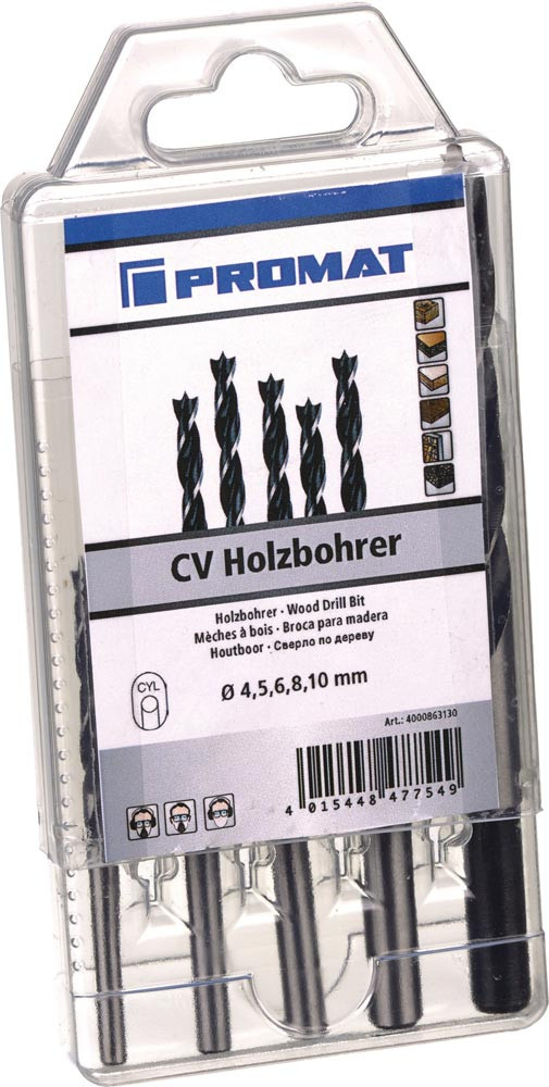 Holzspiralbohrersatz Ø 4, 5, 6, 8, 10 mm 5 teilig CV-Stahl