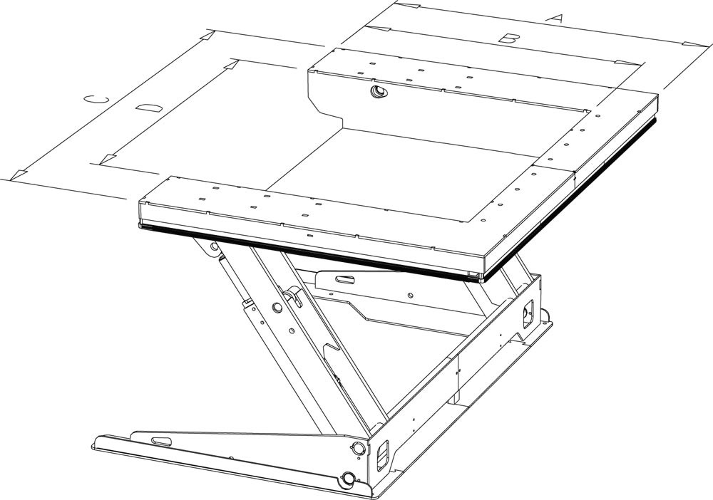 Hub-Neigegerät, Traglast 1500 kg, U-Form-Tischplatte LxB 1200x1050 mm, Nutzhub 820 mm, Bauhöhe 6 mm, Motor 400 V / 0,75 kW E832991