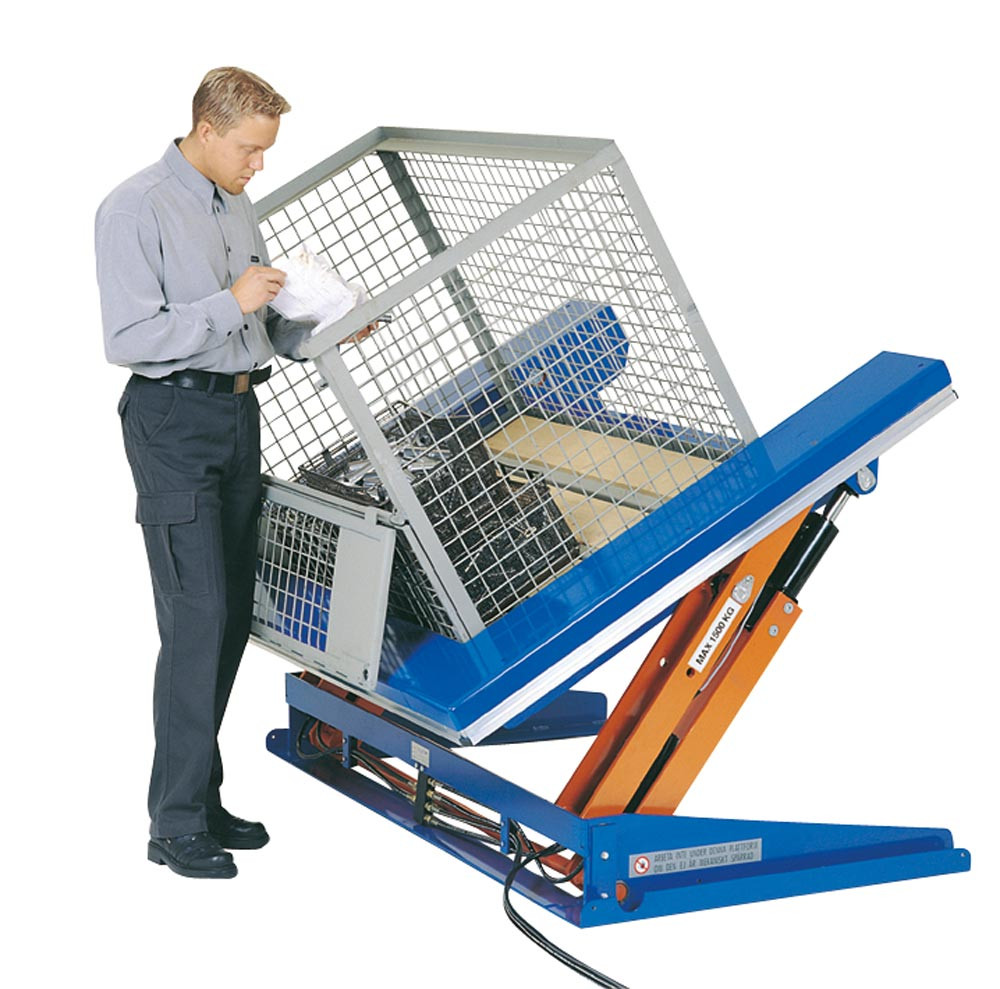 Hub-Neigegerät, Traglast 1500 kg, U-Form-Tischplatte LxB 1200x850 mm, Nutzhub 820 mm, Bauhöhe 6 mm, Motor 400 V / 0,75 kW E832990