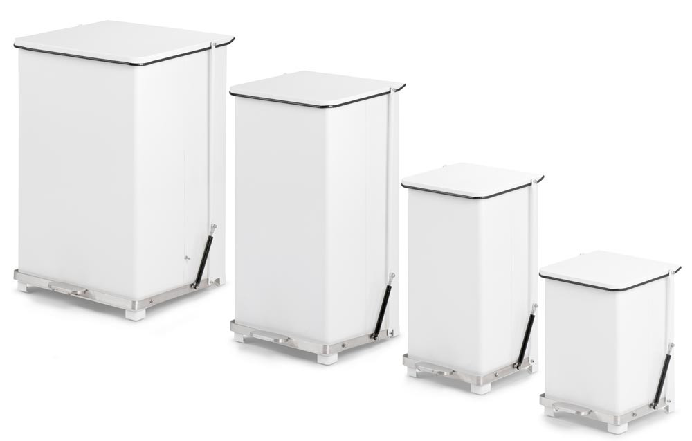 Industrie-Treteimer, Volumen 90 Liter, Stahl, weiß lackiert, BxTxH 435x435x775 mm, Gewicht 14 kg E1968061