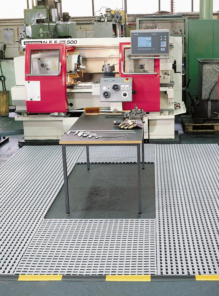 Die Industrieroste eignen sich besonders an Arbeitsplätzen mit hoher maschineller Belastung, starker Verschmutzung und Spananfall. Die Industrieroste sind beständig gegen Öle, Fette und gebräuchliche Chemikalien.