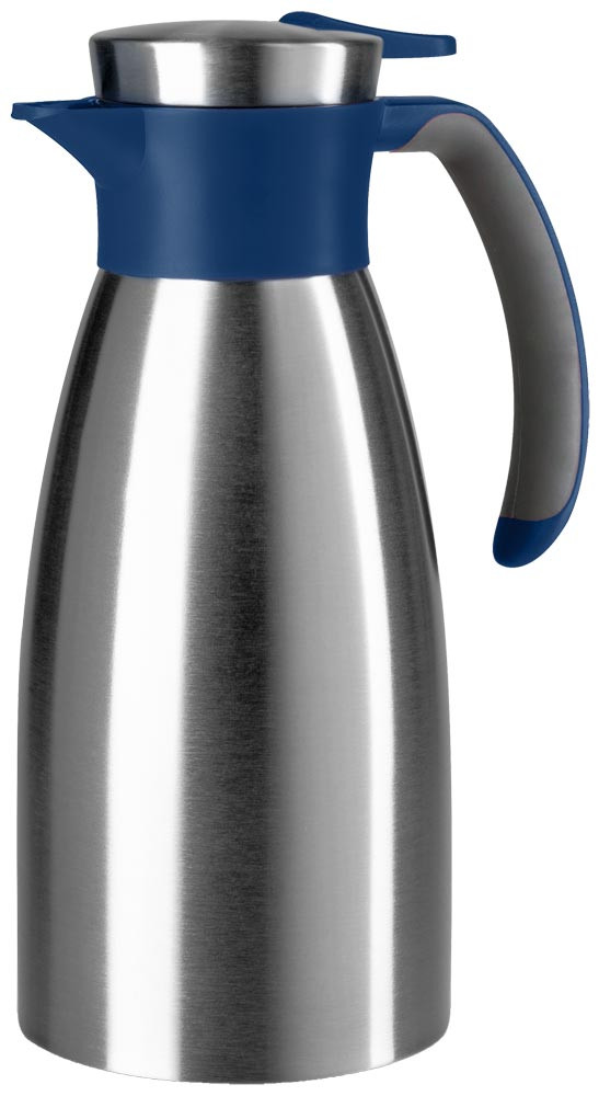 Isolierkanne aus Edelstahl spülmaschinenfest, 1,5 l, Easy Open mit Edelstahlkolben, Edelstahl/blau E6479922
