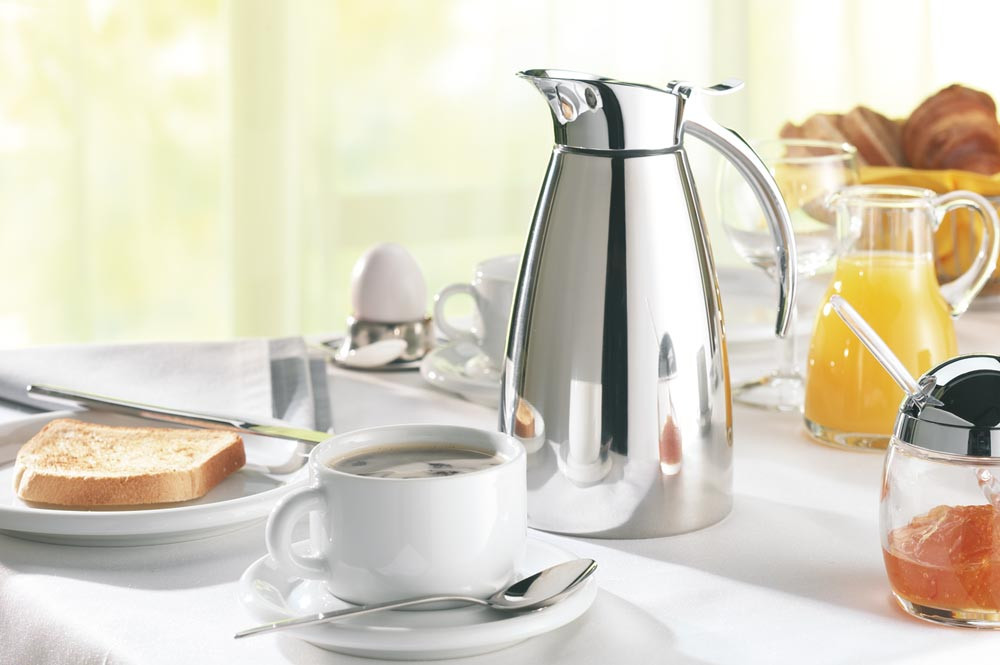 Isolierkanne aus Edelstahl spülmaschinenfest, 1,3 l, Easy Open mit Edelstahlkolben E850053