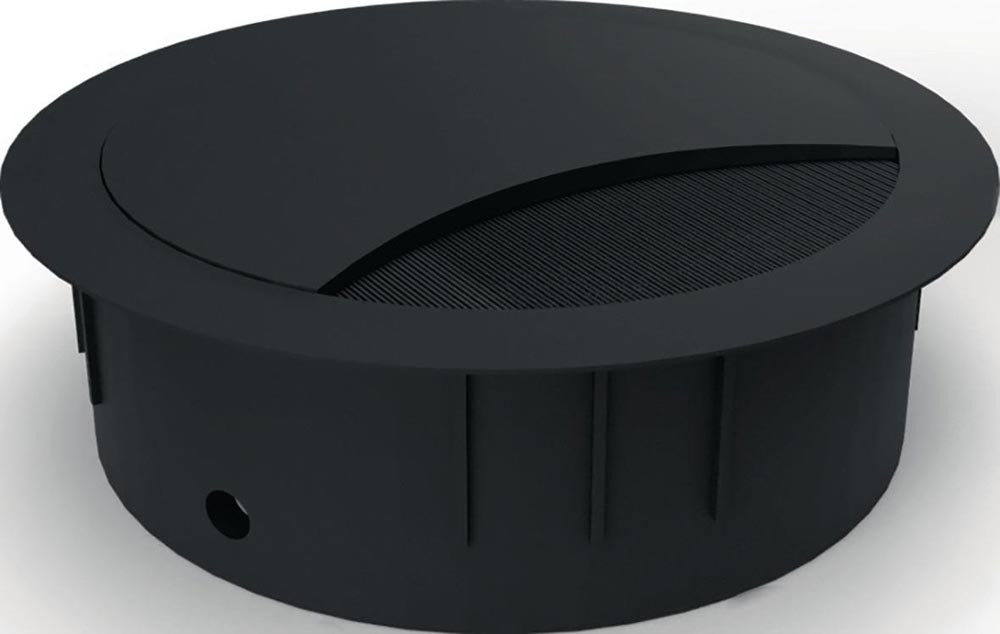 Deckel durch Arretierung gesichert · dicke oder starre Kabel können den Deckel nicht hochdrücken · schwarze Bürstendichtung