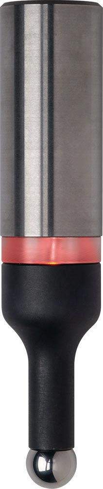 zum exakten Ermitteln von Werkstücknullpunkten und Bohrungsmittelpunkten auf Fräsmaschinen, Bohrmaschinen, Bearbeitungszentren usw. · bei Kontakt, der in den Achsen X und Y ausfedernden Tastkugel mit dem Werkstück, schließt der Stromkreis und die rundumleuchtende Anzeige leuchtet auf · die 3D-Ausführung verfügt zusätzlich über einen Sicherheitsfederweg von 2 mm in der Z-Achse · die Bezugslänge muss zuvor in einem Voreinstellgerät vermessen und berücksichtigt werden · Genauigkeit ± 0,01 mm · Tastkugel-Ø 10 mm