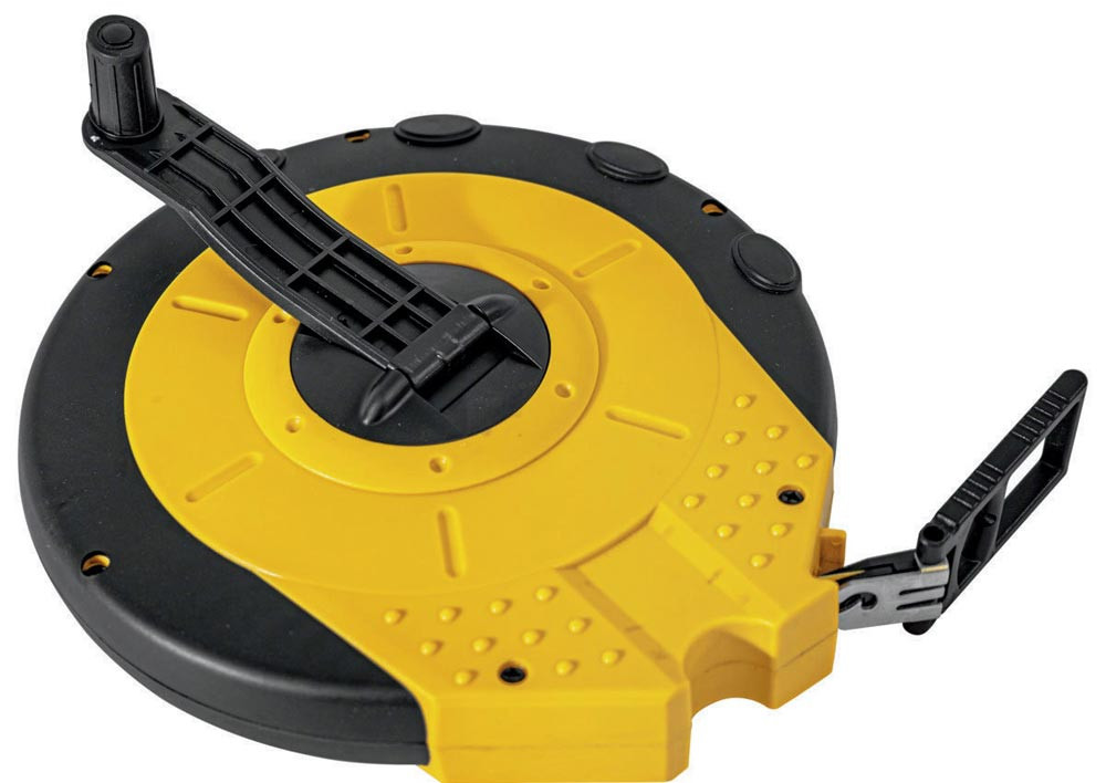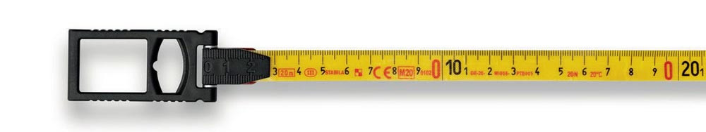 bruchsicheres PC/ABS-Gehäuse · knicksicheres Glasfaserband mit metrischer Skala · Universalhaken · variable Befestigungsmöglichkeiten dank ausklappbarem SPIKES-Haken - für sicheren Halt beim Ziehen des Bandes · integrierte Nagel-Öse im Haken · Kunststoffring: einfaches Hinzurechnen zur gemessenen Länge - 2 cm zwischen Nullpunkt und Nagelkerbe, 5 cm zwischen Nullpunkt und Ringanfang · Nullpunkt ist am Anfang des Bandbeschlages · EG-Genauigkeitsklasse III