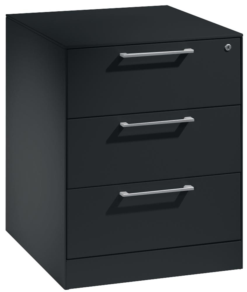 Karteischrank, BxTxH 562x600x698 mm, DIN A5, zweibahnig, 3 Schubladen, Bügelgriff, RAL 7021 schwarzgrau E852781